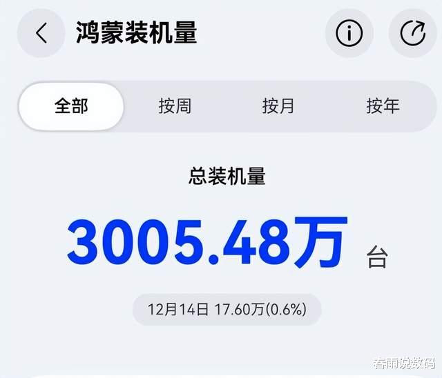 近日,华为纯血鸿蒙系统(鸿蒙5)装机量突破3000万台大关,达到3005.48万台,这是国产操作系统发展史上的一个重要里程碑。从去年10月正式发布以来,鸿蒙系统仅用一年多时间就实现了从零到3000万的跨越,日均装机量超过10万台,展现出强劲的增长势头。