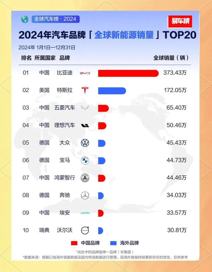 首先最关键的因素,是比亚迪做到了遥遥领先的全球新能源销量第一。